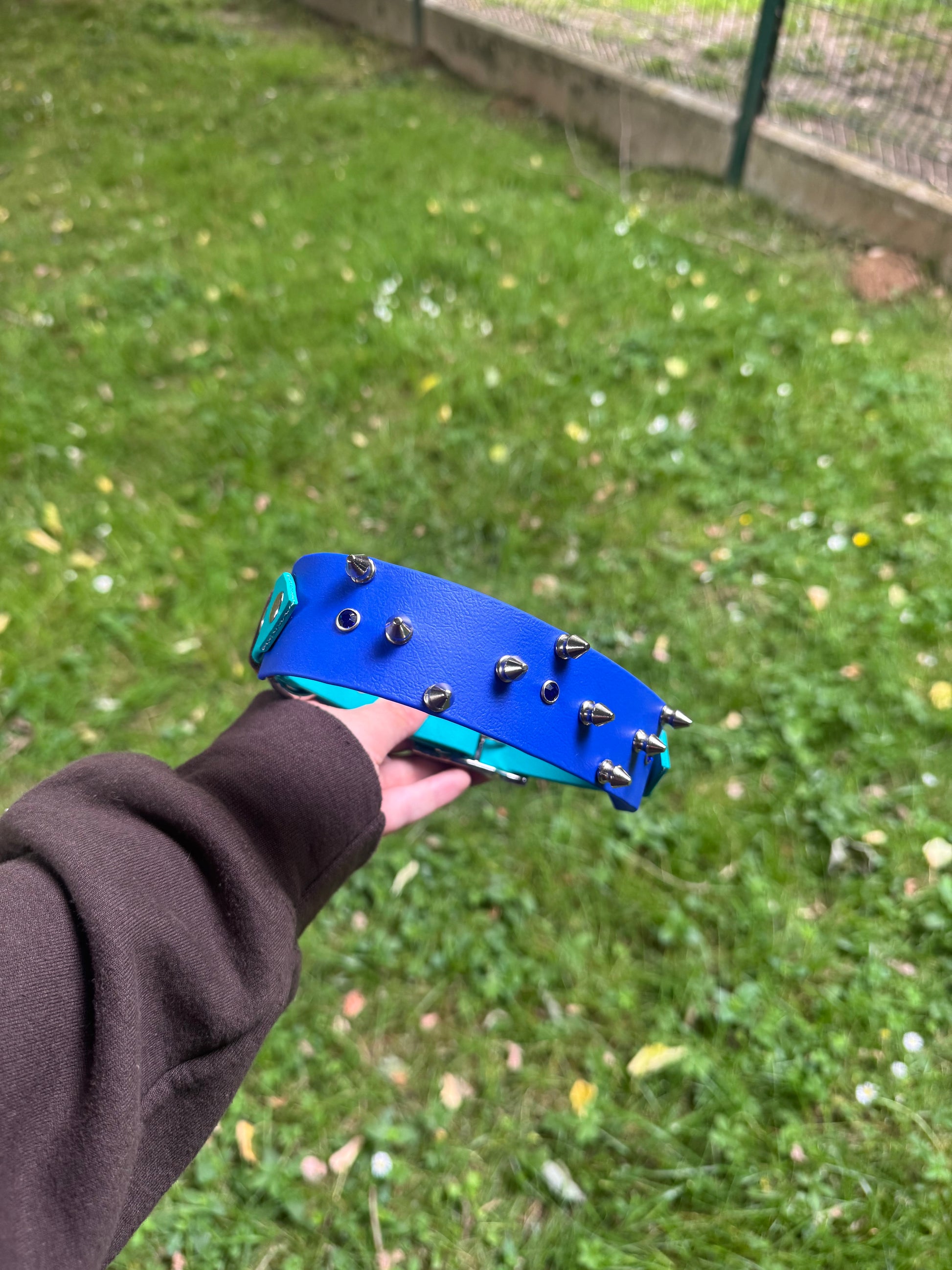 Collier bicolore Lagune/ Bleu foncé orné de pic et de strass pour donner un style rock’n roll à votre loulou!
