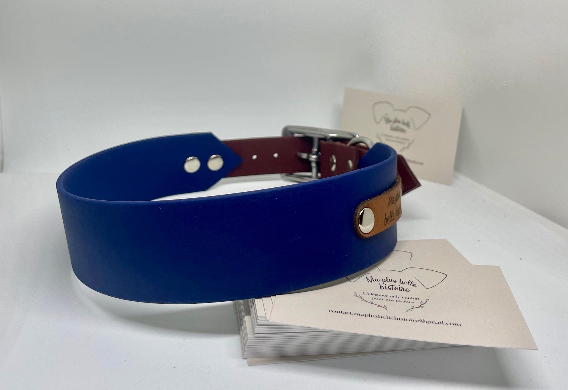 Collier en biothane réglable de 25 et 38mm de large, idéal pour les toutous à partir de 25kg. (Néanmoins, tout dépend de la corpulence de votre chien!)