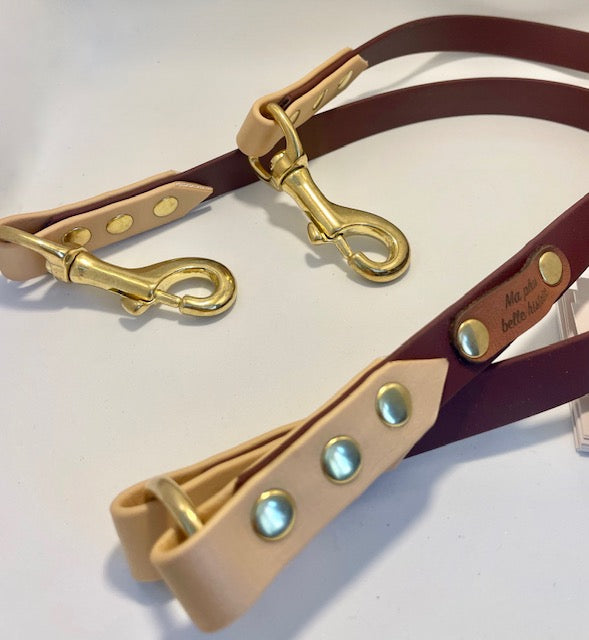 Alliez élégance, confort et qualité en choisissant nos accessoires en biothane fabriqués à la main. Son entretien vous changera la vie : de l'eau claire, du savon et votre produit est comme neuf!